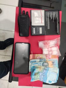 Tim langsung mengamankan Tersangka berinisial dan dilakukan penggeledahan, kemudian Tim menyisir areal TKP dan menemukan barang bukti narkotika jenis shabu lainya di tempat tersangka duduk tempat menunggu pembeli narkotika jenis Shabu.