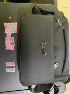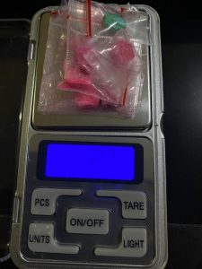 Saat itu juga petugas langsung melakukan penangkapan terhadap terduga sehingga ditemukan padanya barang bukti berupa : 8 (delapan) butir diduga pil ekstasi yang dibungkus dengan plastik klip transparan dengan berat bruto 2,72 gram serta 1 (satu) buah tas warna hitam.