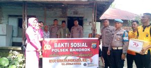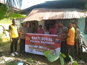 “Kapolsek Bahorok AKP Tunggul Situmeang, SH beserta anggota dan bhayangkari Polsek Bahorok melakukan kegiatan memberikan sumbangan Bingkisan sebanyak 20 Bingkisan.