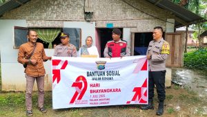“Iya benar, hari ini kami bersama Bhabinkamtibmas menyalurkan bantuan sosial dalam rangka Hari Bhayangkara ke-79.” Ujarnya.