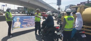 AKBP Dr. Hendri Barus menyampaikan pentingnya disiplin berlalu lintas sebagai budaya masyarakat dan mengimbau kepada seluruh pengguna jalan agar senantiasa mematuhi aturan berlalu lintas, menggunakan helm SNI baik untuk pengendara maupun penumpang sepeda motor, dan memastikan helm diikat dengan benar menggunakan klip pengunci tali helm.