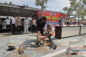 Seluruh barang bukti knalpot brong ini akan dimusnahkan dengan cara dipotong satu persatu menggunakan mesin gerenda besar,” ujarnya.