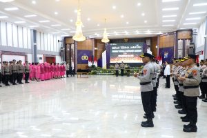 Upacara tersebut dipimpin langsung oleh Kapolda Sumut, Irjen. Pol. Whisnu Hermawan Februanto, S.I.K., M.H., dan dihadiri Wakapolda Sumut, Irwasda Polda Sumut, Ketua Bhayangkari Daerah Sumut beserta pengurus, serta seluruh Pejabat Utama dan Kapolres jajaran.