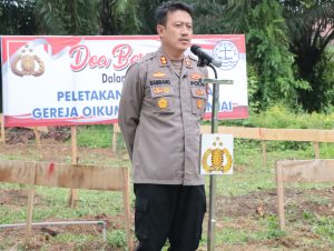 Dalam sambutannya, Kapolres Binjai menyampaikan bahwa gereja Oikumene ini dibangun diatas tanahnya Polres, sehingga nantinya banyak memberikan manfaat khususnya bagi yang beragama nasrani agar dapat beribadah, sehingga mendapatkan berkah dari Yang Maha Kuasa. Juga mengajak seluruh personil agar dapat mendoakan pembangunan gereja Oikumene ini dapat berjalan dengan lancar, terangnya.