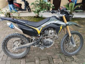 Dalam penggerebekan tersebut, polisi juga menyita barang bukti berupa 1 unit sepeda motor Honda CRF warna hitam-hijau tanpa nomor polisi. Dari hasil interogasi, tersangka mengakui perbuatannya yang memepet kendaraan korban hingga akhirnya berhasil membawa kabur motor NMAX tersebut.