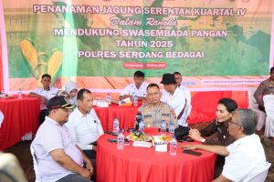 Terkamnews.com || SERGAI – Pada hari Rabu tanggal 8 Oktober 2025 sekira pukul 09.20 WIB bertempat di lahan perkebunan jagung Polres Serdang Bedagai Dusun I Desa Firdaus Kec. Sei Rampah Kab. Serdang Bedagai dilaksanakan kegiatan Penanaman jagung serentak Kuartal IV dalam rangka mendukung swasembada pangan tahun 2025 Polres Serdang Bedagai secara Virtual melalui Zoom Meeting.
