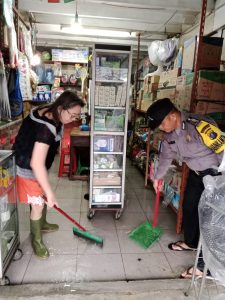 Dalam kesempatan tersebut, petugas Bhabinkamtibmas juga secara aktif memberikan himbauan kepada masyarakat agar selalu waspada terhadap kondisi banjir dan potensi bahaya di sekitar.