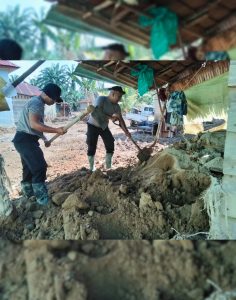 Kegiatan tersebut menyasar dua rumah warga, yakni rumah milik Ibu Roima Siregar dan Bapak Nukman Pasaribu, yang terdampak material lumpur dan sisa bencana. Pembersihan dilakukan secara bertahap dengan menggunakan peralatan sederhana seperti cangkul, sekop, dan angkong, sebagai upaya mempercepat proses pemulihan kondisi rumah warga.