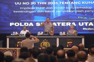 Dalam sambutannya, Kapolda Sumut menegaskan bahwa pemberlakuan KUHP dan KUHAP yang baru merupakan momentum penting sekaligus tantangan besar bagi seluruh aparat penegak hukum, khususnya Polri, dalam melakukan transformasi pola pikir dan pola kerja penegakan hukum.