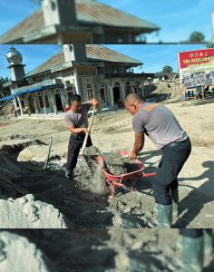 Danton Penugasan Iptu Deny Lius Tarigan, S.H. Bersama Personel Brimob bekerja secara bertahap dengan menggunakan peralatan manual dan mesin, mulai dari cangkul, sekop, beko sorong, mesin penyedot air, hingga chainsaw, guna memastikan proses pembersihan dan pembangunan berjalan efektif dan aman.
