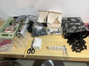 Selanjutnya, petugas melakukan penggeledahan di sebuah apartemen di kawasan Jalan Gaharu (Gelas Ayahanda), tepatnya di kamar 2516 lantai 25, dan menemukan berbagai peralatan serta bahan yang diduga digunakan untuk meracik dan mengemas liquid vape mengandung narkotika.