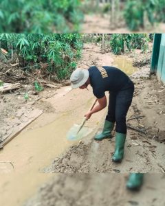 Sementara itu, di Desa Hutanabolon-1, Kecamatan Tukka, personel Batalyon A yang dipimpin Iptu Yauwardi, S.H., melaksanakan pembersihan selokan dari material lumpur dan sumbatan yang menghambat aliran air. Upaya tersebut dilakukan agar fungsi drainase kembali normal serta mencegah terjadinya genangan dan potensi bencana susulan.