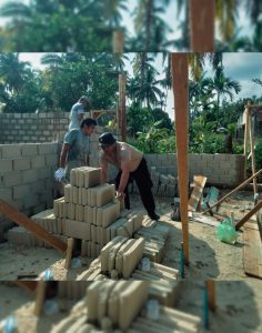 Dalam tahap pengerjaan, personel Brimob melaksanakan pemasangan batu dinding rumah, pemasangan besi pondasi, serta melangsir material batu untuk kebutuhan pembangunan. Selain itu, dilakukan pula perakitan besi dan penimbunan tanah sebagai bagian dari pembangunan hunian tetap tahap awal untuk unit ke-1, ke-2, dan ke-3.