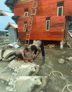 Kegiatan tersebut difokuskan pada bantuan pengecatan rumah hunian sementara (huntara) di Desa Garoga serta pemasangan pipa saluran air di samping rumah warga, Ibu Ayu Pulungan, di Desa Aek Ngadol. Aksi ini dipimpin langsung oleh Komandan Kompi 1 Penugasan Batalyon C, AKP Antanius Tarigan, S.H., M.H., bersama sejumlah personel yang tergabung dalam posko penugasan.