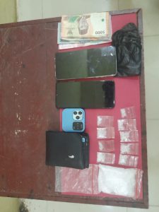 Dalam proses penangkapan dan penggeledahan tersebut, polisi menemukan setidaknya 10 paket narkotika jenis sabu siap edar dalam berbagai ukuran, serta 1 buah handphone warna biru merk flip., 1 buah handpone warna silver merek nubia., 1 buah handpone warna hitam merek oppo., 1 buah plastik asoi, 1 buah dompet warna hitam dan uang tunai Rp. 250.000.